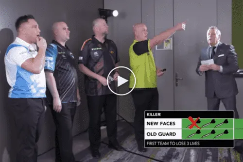 De PDC bracht eerder al leuke video's ter promotie van hun toernooien en daaraan gekoppelde sponsoren. Voor de Premier League 2018 brengen ze op dit moment een leuke nieuwe video waarin Michael van Gerwen en Raymond van Barneveld een koppel vormen namens 'de oude garde'. In dit spel neemt het Nederlands duo het op tegen 'de nieuwkomers' Rob Cross en Gerwyn Price. Het spel heet 'Find Axle Challenge' waarbij beide teams vragen dienen te beantwoorden om vervolgens hun gegeven antwoord te raken op een grote muur vol karikatuurtekeningen van bekende dartspelers.