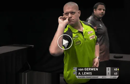 Gary Anderson na het missen van de perfecte en . De PDC bracht enkele wedstrijden gratis via haar livestream en deze zijn hieronder te bekijken. Hierbij zat onder andere het mooi duel tussen Michael van Gerwen en Adrian Lewis waarbij de Nederlander bijna een 9-darter gooide. 6-3