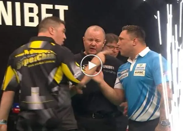 Gerwyn Price. Na afloop verscheen The Iceman al snel voor de camera en sprak daarin hoe hij dit opmerkelijk moment had beleefd. "Hij beweerde dat ik aan het praten was. Als ik mijzelf wil oppeppen dan doe ik dat. Maar ik doe dat niet als hij aan het gooien is. Volgens mij wilde hij mij gewoon uit de tent lokken en zo een schorsing aannaaien," aldus Gerwyn Price. Voor Gerwyn Price loopt er namelijk een voorwaardelijke schorsing tot en met op 11 juli 2019. Dat betekent dat wanneer The Iceman voor die tijd in de fout gaat dat hij er dan niet vanaf komt met een boete maar dan volgt er direct een schorsing.