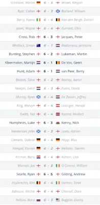 Uitslagen van de plaatsingsronde zijn hieronder te vinden: