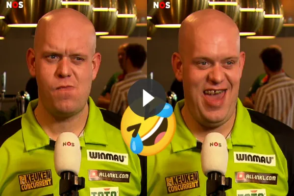 Michael van Gerwen en een journalist van de NOS.