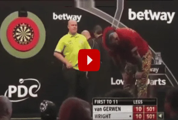 Michael van Gerwen profiteerde optimaal en pakte voor de derde keer de befaamde titel. Om dit opmerkelijk moment nogmaals te herbeleven tonen we hieronder het pijnlijk moment voor The Snakebite met aanvullend de winnende darts van Michael van Gerwen.