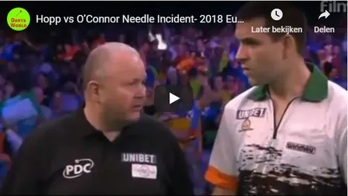 Incident tussen Max Hopp en William O'Connor op podium EK Darts
