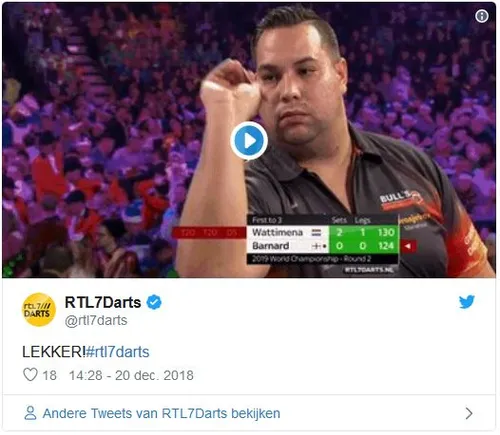 Michael Barnard en won met 3-0 in sets. Hierbij wist Wattimena nog een schitterende bull-finish te gooien waarna hij de partij in het slot gooide zoals te zien is op onderstaande beelden.