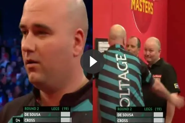 Jose de Sousa staat bekend om zijn miscounts en bizarre fouten maar deze keer was het zijn tegenstander die in de fout ging. Rob Cross ging pijnlijk in de fout en dat dit uitgerekend tegen de Portugees gebeurde maakte beide spelers aan het lachen. Het komisch moment tussen de twee is te bekijken op .