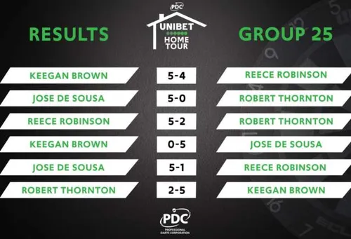Met overtuiging heeft Jose de Sousa zich geplaatst voor de volgende ronde van de PDC Home Tour. Slechts 1 leg stond hij af aan Reece Robinson en verder werden Robert Thornton en Keegan Brown met 5-0 verslagen.