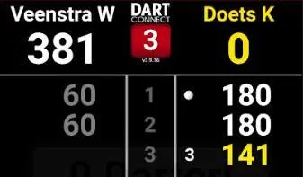 De perfecte leg werd gegooid in de derde leg van de partij waarbij Doets op een 3-0 voorsprong kwam. Na tweemaal 180 werd 141 uitgegooid en de partij zou uiteindelijk met 4-2 worden gewonnen door Kevin.