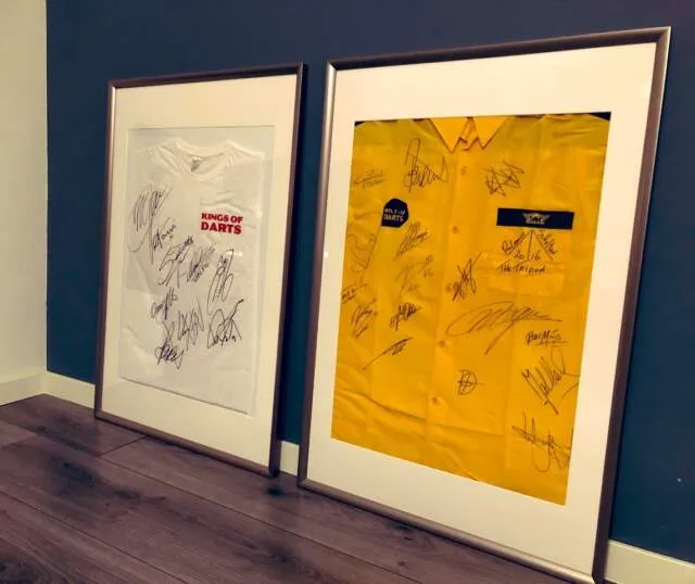 Beide shirts hangen inmiddels in een mooi frame naast elkaar.