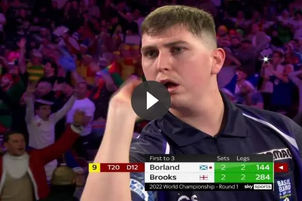 Jeugd Wereldkampioen 2020 Bradley Brooks. Wat de prestatie van Borland nog mooier maakt is dat hij de wedstrijd met de 9-darter besliste. Debutant William Borland gooide de 9-darter in de beslissende set en in de laatste leg en wel via 180, 177, 144. Met een gelijke stand van 2–2 in sets en 2–2 in legs moest de beslissende leg worden gespeeld zoals te zien is op .