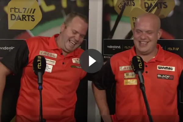 VIDEO: Michael van Gerwen struikelt bijna over zijn tegenstander