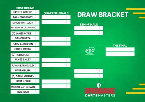 Loting Brisbane Darts Masters bekend voor Van Gerwen en Barney