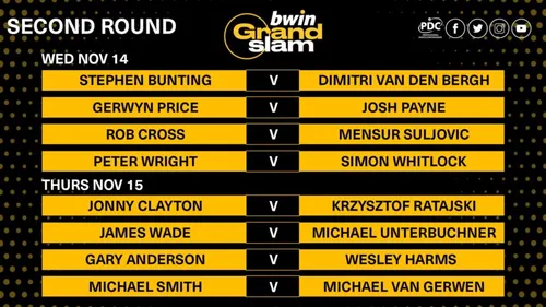 Tot deze groep behoren onder andere Michael van Gerwen en Wesley Harms en zij mogen het op donderdagavond gaan opnemen tegen Michael Smith en Gary Anderson.