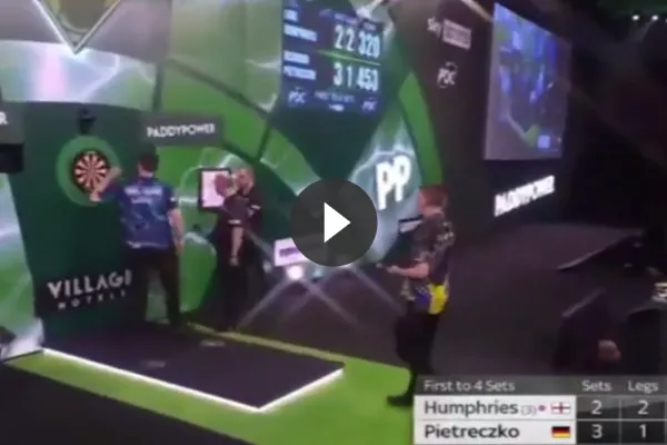 De ellende voor Humphries begon al voorafgaand aan de partij toen plots de punt van één van zijn pijlen afbrak. Hij was niet meer in de gelegenheid om zijn punt te vervangen en dus speelde hij met een volledig nieuw setje darts. Uiteraard was dit een setje met dezelfde setup maar toch miste hij het vertrouwen omdat hij jarenlang met zijn vertrouwde setje had gespeeld.