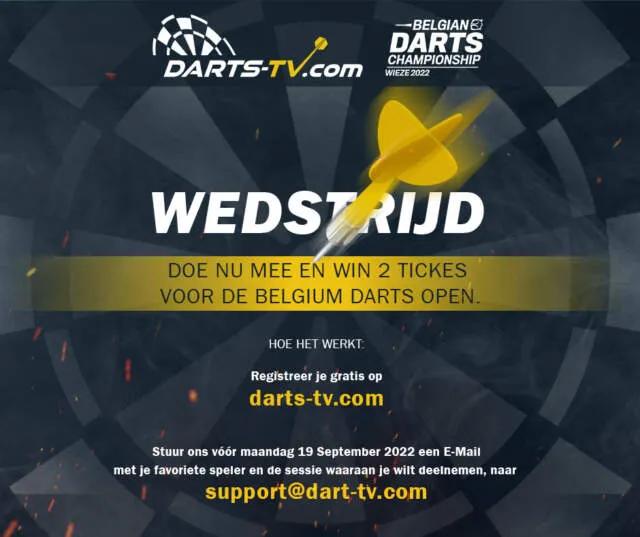 Dit weekend is het PDC te gast in Amsterdam voor de World Series of Darts Finals en volgend weekend zal dit in Wieze, België zijn voor de Belgian Darts Open. Van de organisatie mogen we 12 kaarten weggeven (2 per sessie) en jij maakt kans om hier met een vriend of vriendin gratis naartoe te mogen.