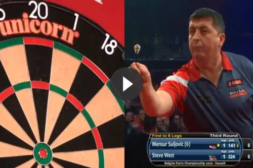 Mensur Suljovic speelde zondagmiddag bij de laatste 16 tegen Steve West en kwam hierbij dicht bij perfectie. In de derde leg wist The Gentle te openen met tweemaal 180 en dus mocht hij aanleggen voor een 141-finish en een 9-darter.