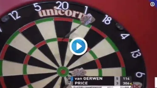 Eerder zagen we het al in de finale van de UK Open Qualifier tegen Michael Smith toen Van Gerwen een gooide. Vandaag tijdens de Players Championship 1 was het weer raak voor de Nederlander. In de halve finale tegen Gerwyn Price besloot Michael van Gerwen de partij met een 114-finish via wederom tweemaal de bulls-eye. Beelden van deze waanzinnige finish zijn hieronder te bekijken.