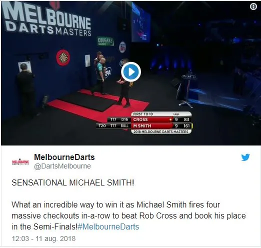 Michael Smith leek dood en begraven toen hij tegen een 9-6 achterstand aan keek in zijn duel met Rob Cross. De regerend wereldkampioen faalde alleen om de partij in het slot te gooien en liet Smith terug in de wedstrijd komen. Bully Boy maakte dankbaar gebruik en vocht zich terug naar een beslissende laatste leg waarin hij het op een waanzinnige wijze afmaakte.