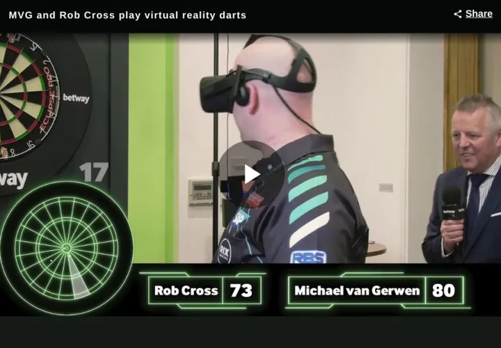 Michael van Gerwen en Rob Cross hebben een potje darten tegen elkaar gespeeld zoals ze dit nog niet eerder deden. Ze speelden voor een promo-video een virtueel potje darten. Vanzelfsprekend ging dit er niet eerlijk aan toe en haalden ze alle capriolen uit om elkaar te verslaan. Bekijk de beelden hieronder.