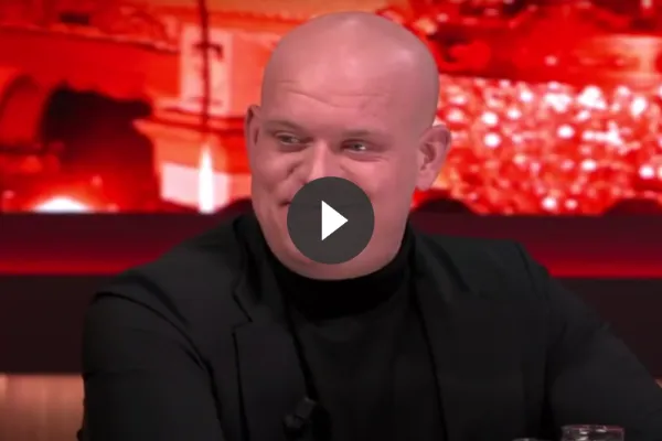 Michael van Gerwen te gast als analist in de studio van Viaplay.