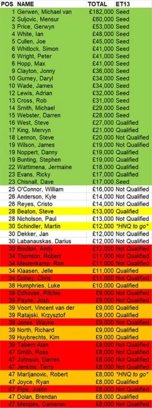 Michael van Gerwen, Danny Noppert en Jermaine Wattimena zijn zeker van plaatsing en ditzelfde geldt voor de Nederlands sprekende Engelsman Steve West.