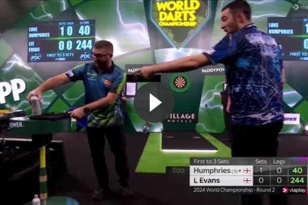 Lee Evans wist niet wat hij zag toen hij een blik wierp op zijn tafeltje. In zijn darts case trof hij onverwacht bezoek aan waar Luke Humphries wel raad mee wist. Er werd korte metten gemaakt met de bekendheid die weer kwam opduiken.