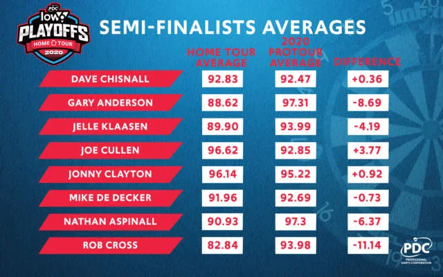 Christopher Kempf zette enkele interessante statistieken op een rij van de spelers die de halve finales van de PDC Home Tour wisten te halen.