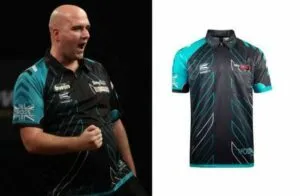 Raymond van Barneveld. Het betreft een shirt van de vijfvoudig wereldkampioen in de maat L. E