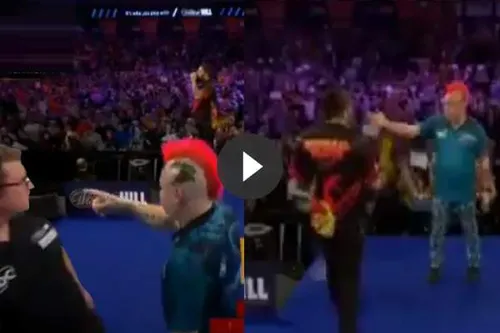 Vanaf het eerste moment gingen de 180-ers als zoete broodjes over de toonbank in de finale van het PDC WK 2022. De teller zou uiteindelijk oplopen naar maar liefst 41 stuks met 24 stuks voor Smith en 17 stuks voor Wright. Maar het finishen tijdens de tweede leg was een ramp van beiden en toen kwam er een dicussie over wind op het podium zoals te zien is op .