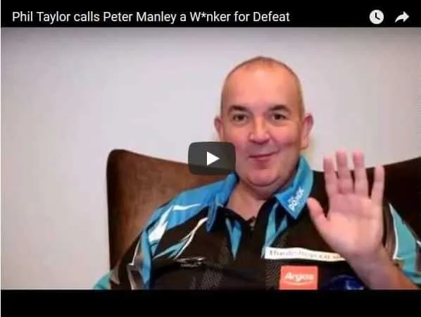 Phil Taylor inmiddels ruim een maand met pensioen. Nu en dan is The Power nog te bewonderen op een demotoernooi en sporadisch geeft hij nog een interview af. Voor het Duitse DAZN Darts deed hij een opmerkelijke uitspraak dat betrekking had op een incident tussen hem en Peter Manley van inmiddels ruim 10 jaar geleden. Tijdens de Premier League van 2008 was Manley met 8-3 te sterk voor Taylor in de vierde speelweek. Hierop besloot One Dart, zoals de bijnaam van Peter Manley luidt, het dartbord eraf te halen en te laten signeren door de meester zelf. Dit is Taylor nog altijd niet vergeten en daar wou hij hem, op zijn eigen manier, nog even hartelijk voor bedanken.