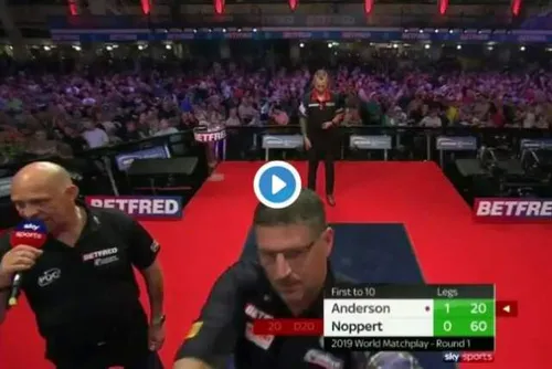 Danny Noppert kende een ongemakkelijk moment in zijn debuutpartij op de World Matchplay zaterdagavond. In de tweede leg van zijn partij tegen Gary Anderson zag de Nederlander een pijl pijnlijk buiten het bord belanden. Desondanks wist Noppie nog een comeback te maken naar 6-7 nadat hij eerder op een 1-6 achterstand kwam. Toch zat het er uiteindelijk niet in want met 10-6 ging de winst naar de Schot. Hét moment dat hij buiten het bord gooide bleef dan ook door het hoofd spoken van de Fries, zo vertelde hij na afloop tegen Arjan van der Giessen.