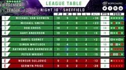 Dit jaar maakt Barney dus vrijwel geen kans meer op de titel, Van Gerwen staat op de eerste plaats en is vrijwel zeker van de play-offs. De Brabander gooide 100 gemiddeld in 32 opeenvolgende Premier League wedstrijden! Tevens speelde MvG donderdagavond zijn 100ste wedstrijd in de Premier League, 70 wedstrijden gewonnen, 15 verlies partijen en 15 wedstrijden eindigde in een 6-6 stand. Van Gerwen is de zesde speler die 100 wedstrijden speelde in de League.