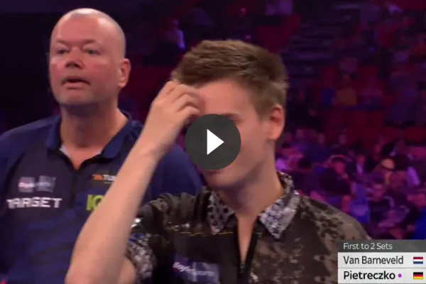 Toch kan hij deze keer met een beter gevoel terugkijken op de partij want waar in Zwitserland Barney nog met 6-5 aan het langste eind trok was het deze keer Pietrezko die aan het langste eind trok. Nadat de eerste twee sets met 3-2 eerlijk werden verdeeld was het verschil in de uitslag in set 3 een stuk groter. Zonder een leg te pakken zag de Nederlander namelijk met 3-0 de set naar zijn tegenstander gaan die daarmee de winst pakte.