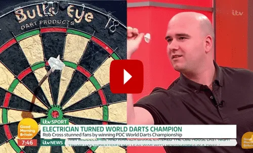 Kersverse wereldkampioen Rob Cross was te gast bij het ochtendprogramma Good Morning Britain en sprak daarin over hoe onwerkelijk zijn leven op dit moment is. De voormalig elektricien is nog geen jaar profspeler en moest naar zijn eerste toernooi gesleept worden door zijn oom Robert. Om nog maar eens aan te geven hoe snel het is gegaan met de speler uit Pembury haalt Cross een leuk verhaal aan. Rob Cross: "Vorig jaar speelde ik nog een koppeltoernooi waarbij we ieder 7 pond wonnen en nu ben ik wereldkampioen en 400.000 pond rijker. Het is onwerkelijk." bewijst dat dit verhaal niet verzonnen is. Aansluitend speelde Rob Cross nog een duel tegen presentatrice van de show, Charlotte 'The Hawk' Hawkins. Phil Taylor verslaan is één ding maar winnen van de presentatrice van de ochtendshow blijkt een heel ander verhaal zoals blijkt uit onderstaande beelden.
