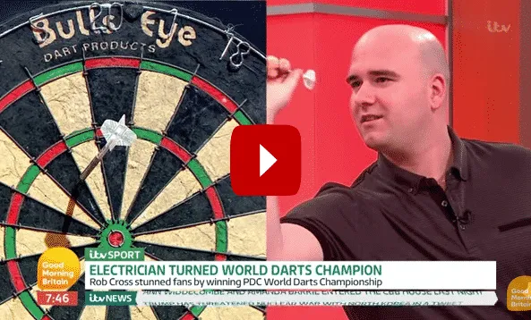 Kersverse wereldkampioen Rob Cross was te gast bij het ochtendprogramma Good Morning Britain en sprak daarin over hoe onwerkelijk zijn leven op dit moment is. De voormalig elektricien is nog geen jaar profspeler en moest naar zijn eerste toernooi gesleept worden door zijn oom Robert. Om nog maar eens aan te geven hoe snel het is gegaan met de speler uit Pembury haalt Cross een leuk verhaal aan. Rob Cross: "Vorig jaar speelde ik nog een koppeltoernooi waarbij we ieder 7 pond wonnen en nu ben ik wereldkampioen en 400.000 pond rijker. Het is onwerkelijk." bewijst dat dit verhaal niet verzonnen is. Aansluitend speelde Rob Cross nog een duel tegen presentatrice van de show, Charlotte 'The Hawk' Hawkins.