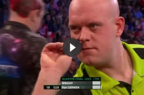 Vanmiddag stonden Michael van Gerwen en Peter Wright tegenover elkaar op het podium van de Players Championship Finals. De twee betraden het podium maar moesten er even later weer vanaf zonder een officiële pijl te hebben gegooid. Reden was een brandalarm maar een kwartier later kon het duel als van start en speelden de twee heren tegen elkaar. Voor de liefhebbers die willen weten hoe dit duel verliep kunnen we de beelden brengen in .
