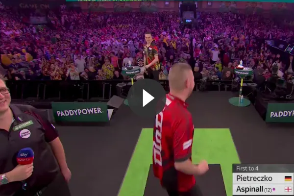 In de kwartfinale zal Aspinall mogen aanleggen tegen Luke Littler of Ryan Joyce die het op maandagavond tegen elkaar opnemen. Op 1 januari staat deze wedstrijd op het programma wanneer de eerste twee kwartfinales worden gespeeld in de middag en de andere twee kwartfinales worden in de avond gespeeld.
