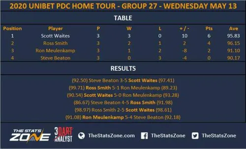 Scott Waites is winnaar geworden van de PDC Home Tour speeldag 27. Hij versloeg Ron Meulenkamp, Steve Beaton en Ross Smith.