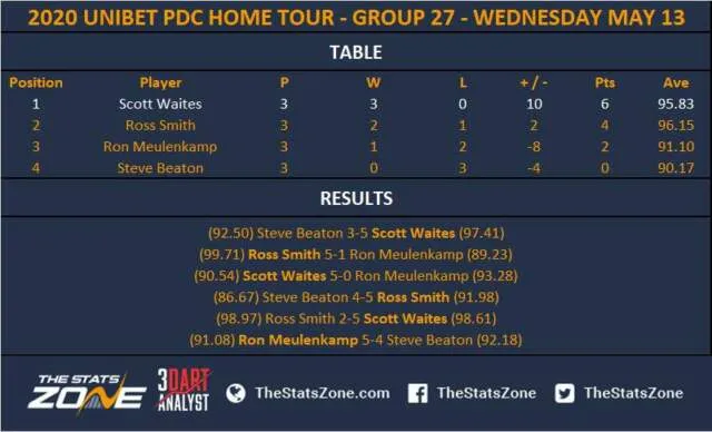 Scott Waites is winnaar geworden van de PDC Home Tour speeldag 27. Hij versloeg