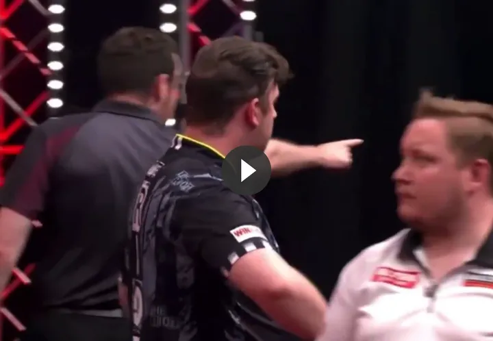 Het publiek is vanzelfsprekend voor de Duitser maar toen één supporter te ver ging volgens de PDC scheidsrechter moest hij het ontgelden. Huw Ware stapte zelf op de supporter af zoals te zien is op