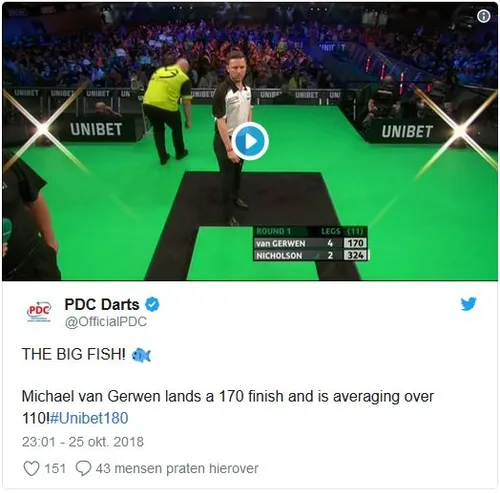Van Gerwen zet Nicholson op zijn plaats met prachtige 170-finish
