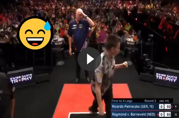 7 wedstrijdpijlen kreeg maar deze allemaal onbenut liet. De Duitser profiteerde en ging en daardoor alsnog met de winst vandoor in Basel.