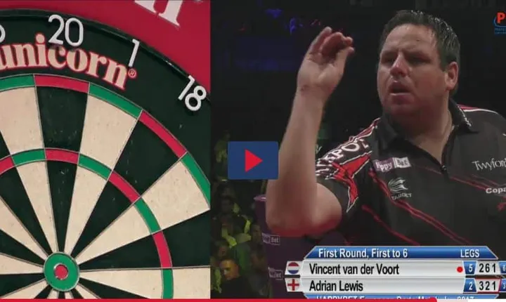 Vincent van der Voort en overleefde meerdere matchdarts maar kwam toch ijzersterk terug. Zo sterk zelfs dat hij bijna een perfecte leg wist te gooien. The Jackpot wist tweemaal 180 te gooien en ook de zevende en achtste pijl gingen raak. De dubbel 12 bleek de Engelsman alleen niet goed gezind zoals te zien is op onderstaande beelden.