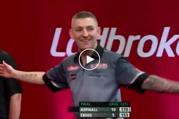 Nathan Aspinall heeft zondagavond de UK Open 2019 op zijn naam geschreven. Hij deed dit op spectaculaire wijze door de finale te beëindigen met een 170-finish. Het was echter niet voor het eerst dit toernooi dat hij de hoogst mogelijke finish gooide. Hij flikte dit kunstje ook al in de kwartfinale. Bekijk hieronder de beelden.