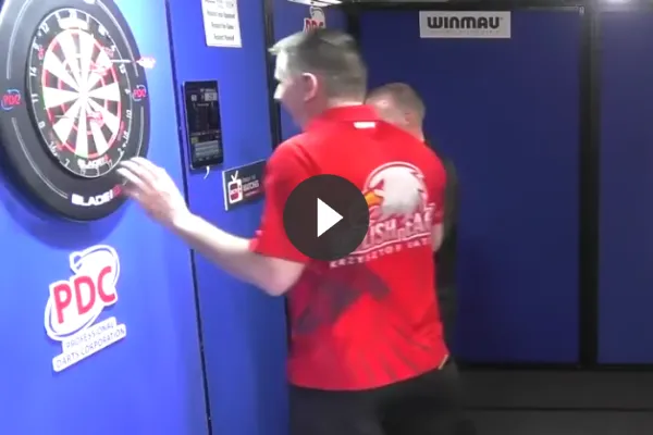 Dit weekend zagen we een bizar moment in het duel tussen Krzystof Ratajski en Chris Landman dat we nog niet eerder hebben meegemaakt. Het komt weleens voor dat een speler een leg wordt toegekend terwijl de dubbel er toch echt niet in zat.