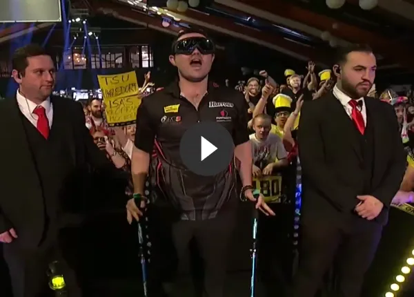Damon Heta had onlangs al een briljante walk on op de German Darts Grand Prix waarbij al dansend met een feestmuts op het podium opkwam. Het bleek een voorbode van wat we van hem mogen verwachten in de toekomst want vanmiddag deed hij er nog een schep boven op.