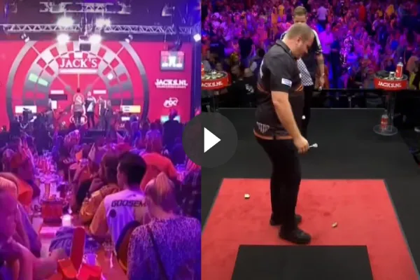 World Series of Darts Finals in Amsterdam was er een opmerkelijk moment in de eerste leg tijdens het duel van