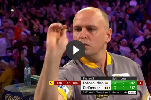 De Litouwer speelde tegen de Belg Mike de Decker en in de eerste set was het meteen al raak. Labanauskas begon daarin erg goed in met de 2-1 stand in de set, begon Labauskas met een 174-score, die hij opvolgde met een 180-er. Vanaf 147 gooide Lucky D de triple 20, triple 17 en de dubbel 18 erin, waardoor de tweede twee 9-darter binnen twee dagen werd gerealiseerd. De 9-darter nog eens terug te zien kan op . Om de wedstrijd live te kunnen blijven volgen, verwijs ik u graag naar artikel of naar de stream van RTL7Darts of Videoland.