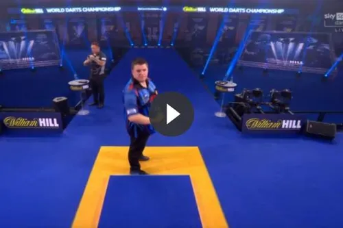 VIDEO: Daryl Gurney gooit pijl woest onderhands in duel met Price