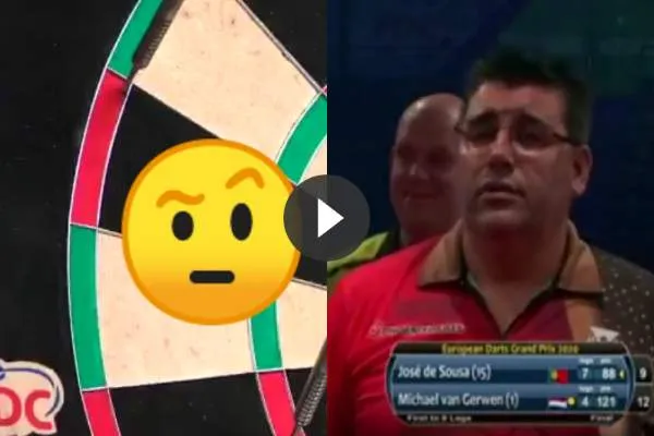 Michael van Gerwen en geheel passend bij De Sousa eindigde hij deze ook op een manier zoals alleen hij dit kan. Zijn bizarre winnende finish is te bekijken op