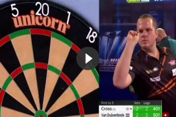 Dirk van Duijvenbode wist Rob Cross te verslaan en deed dit in stijl tijdens de laatste en beslissende leg. Hij gooide namelijk een 12-darter waar iets opmerkelijks mee was. Hij gooide namelijk geen enkele triple 20 maar kende een perfecte score op de triple 19 zoals te zien is op .